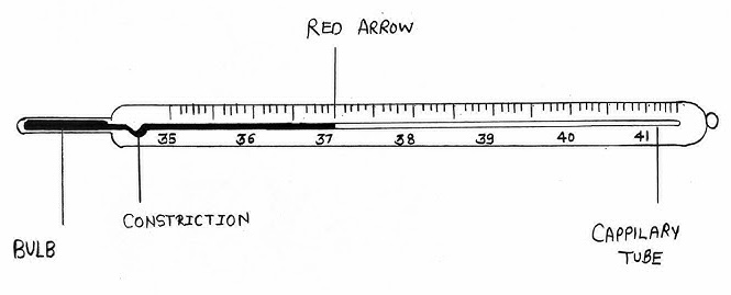 It operates on the principle of thermal expansion. Traditionally, it contained a narrow, sealed glass tube with a bulb at one end filled with mercury. When placed in the mouth, armpit, or rectum, the heat from the body causes the mercury to expand, forcing it to rise up the narrow constriction (kink) in the tube. This kink prevents the mercury from falling back immediately after removal, allowing for a reading to be taken.