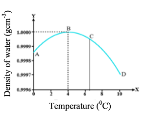b. Write the change that takes place in volume of water on heating from 00C to 100C.