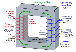 In domestic house hold wiring voltage of 220V is supplied. A battery of mobile works with 3.7 V. Draw net diagram of transformer used in mobile charger.