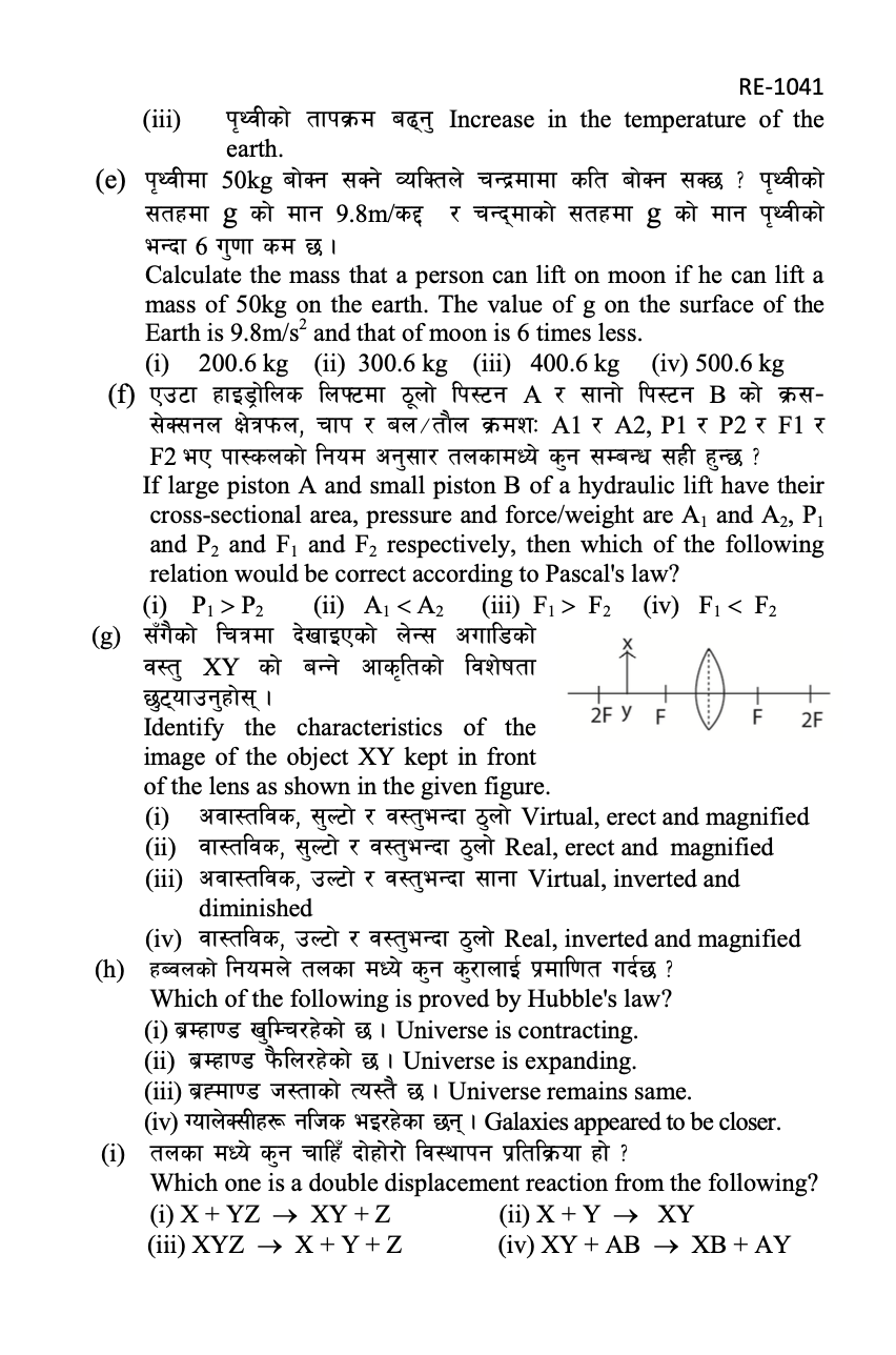 f) If large piston A and small piston B of a hydraulic lift have their cross-sectional are, pressure and force/weight are A1and A2, P1 and P2 and F1 and F2 respectively, then which of the following relation would be correct according to Pascal’s law?