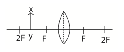 g) Identify the characteristics of the image of the object XY kept in front of the lens as shown in the given figure.